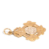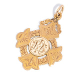 Engraved as a presentation medallion with: Latin Freda Mulholland Hallmarks: 9 .375 - 9ct gold Anchor - Birmingham Assay Office (sideways anchor denotes gold) Lower case e in truncated square - 1904 B&C - Makers mark unknown The front has an engraved monogram