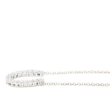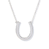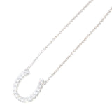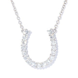 Greta, a stunning 18 carat white gold contemporary necklet, holds a darling white gold horseshoe motif on a fine cable link chain, evoking the charm and essence of contemporary elegance.
