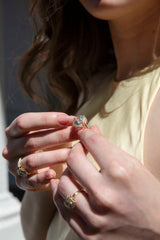 Indulge in the nostalgia of a bygone era with our Graceful Kelly Collection - with 100% recyclable gold, sustainably sourced or refurbished vintage gemstones, all crafted into jewels that speak to your individuality, evoking a timeless allure and the essence of old-world romance.