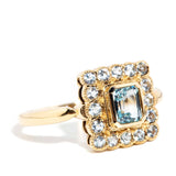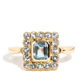 The 9 carat gold Marlena Ring, embellished with a light filled emerald cut blue topaz and a stunning topaz border, is a joyful way to say "I love you". It is sometimes in the purest design that the creativity and poignance of jewels is expressed. Embrace this exuberant celebration of a romantic past as your own.