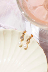 Maude Morganite & Pearl Drop Earrings 9ct Rose Gold