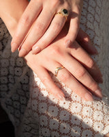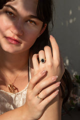 The Harrison Ring is part of our trove of strongly sustainable, environmentally friendly, and conflict-free jewellery. She lives in our carefully curated collection of one-of-a-kind vintage treasures - polished and restored with care by our talented jewellers, restoring them to their former glory.