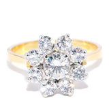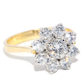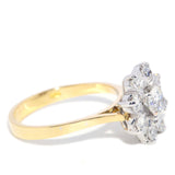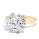 Leena, a stunning 1960s diamond flower cluster ring, shines brilliantly with each delicate petal crafted from timeless 18 carat gold.