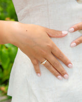 The Valentina Ring is part of our trove of strongly sustainable, environmentally friendly, and conflict-free jewellery. She lives in our carefully curated collection of one-of-a-kind vintage treasures - polished and restored with care by our talented jewellers, restoring them to their former glory.