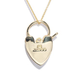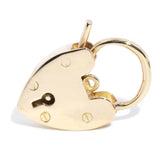 Joelle, a heart padlock pendant elegantly crafted in 9 carat yellow gold, captures the essence of love and security in the 1970s with every glint.