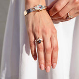 The Audrey Ring can be resized upon request prior to shipping. Resizing is complimentary up or down three sizes. Please message us for a quote if more sizes are needed.