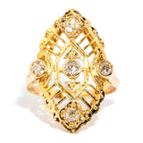 The Marcia Ring belongs to our treasure trove of strongly sustainable, ethical, environmentally friendly, and conflict-free jewellery. She lives in our carefully curated collection of one-of-a-kind vintage jewellery pieces. A vintage piece of jewellery has many stories to tell. Tales of romance, love, family, happiness and sometimes loss and endurance. Handed down from person to person, generation to generation. The Marcia Ring is a piece of wonderful history.