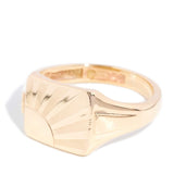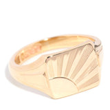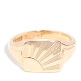 Our vintage Sunray Signet Ring comes to us from the last days of the 1960s. The warm glow of her 9 carat gold band complements the sunray motif, a symbol of warmth and optimism. A memory of a time of huge social and cultural change, our Sunray Ring is a shining light beaming ever forward.