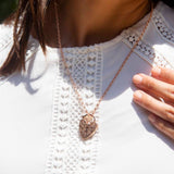 The Austin Pendant & Chain belongs to our treasure trove of strongly sustainable, ethical, environmentally friendly, and conflict-free jewellery. She lives in our carefully curated collection of one-of-a-kind vintage jewellery pieces. A vintage piece of jewellery has many stories to tell. Tales of romance, love, family, happiness and sometimes loss and endurance. Handed down from person to person, generation to generation. The Austin Pendant & Chain is a piece of wonderful history.