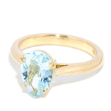 In the soft glow of candlelight, the contemporary Siri pear cut topaz solitaire ring emerges like a whispered promise. Her azure heart, a breathtaking topaz, cradled in 18 carat gold, reimagines forgotten treasures, weaving stories anew with metals gently uncovered from time’s embrace.