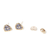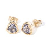 Zoe, an exquisite pair of stud earrings, features pale purple shield cut spinels delicately set in 9 carat gold, offering a contemporary nod to elegance's enduring allure.