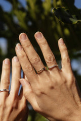 The Sherri Ring belongs to our treasure trove of strongly sustainable, ethical, environmentally friendly, and conflict-free jewellery. She lives in our carefully curated collection of one of a kind vintage jewellery pieces. A vintage piece of jewellery has many stories to tell. Tales of romance, love, family, happiness and sometimes loss and endurance. Handed down from person to person, generation to generation. The Sherri Ring is a piece of wonderful history.