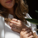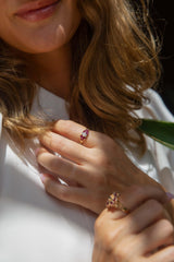 The Moriah Ring is part of our trove of strongly sustainable, environmentally friendly, and conflict-free jewellery. She lives in our carefully curated collection of one-of-a-kind vintage treasures - polished and restored with care by our talented jewellers, restoring them to their former glory.