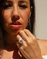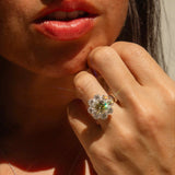 The Flora Ring is part of our trove of strongly sustainable, environmentally friendly, and conflict-free jewellery. She lives in our carefully curated collection of one-of-a-kind vintage treasures - polished and restored with care by our talented jewellers, restoring them to their former glory.