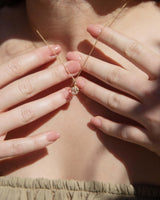 Like the hush before dawn, the Luma pendant glows with a gorgeous white zircon - pure, quiet, and full of promise. Set in 15 carat gold, she is the first breath of light, the whisper of day’s beginning. Her radiance finds harmony in her golden sister Aurea and her blushing counterpart Cira - a trio woven from the sky’s own rhythm.