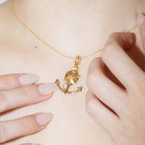 Jiyan is a 22 carat gold pendant embodying security and freedom in the steadfast image of an anchor and a swallow taking flight. Restored to perfection, she gleams with a promise of new beginnings.