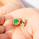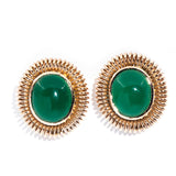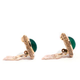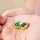 Whispers of the past dance upon the luminous green agate of these exquisite 1970s earrings. Crafted in 9ct gold, they capture and refract light like emerald dreams, illuminating your spirit. Wearing them feels like draping a cherished memory—a striking statement of your unique journey and the elegance you carry into every moment.