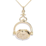 A delightful vintage curio, Demi holds memories within her lustrous 9 carat gold embrace, a delicate locket pendant pirouetting back to yesterday's whispers. Her intricate patterns dance like secret sonnets, capturing light and shadow in a symphony of whispers and warmth.